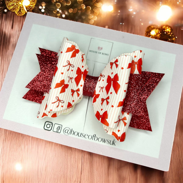 Christmas red bow hair bow