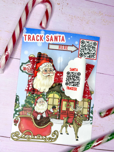 Just scan the QR code on the bow or the bow card on Christmas Eve to track Santa